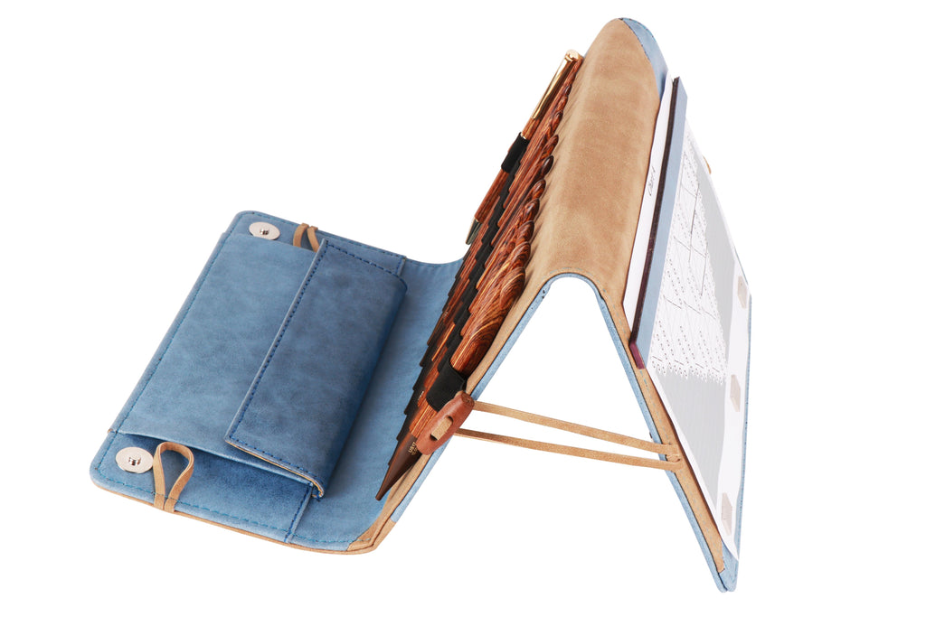 Packaging: Premium needle case with pattern holder in denim & beige finish